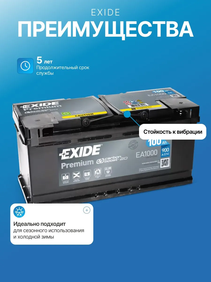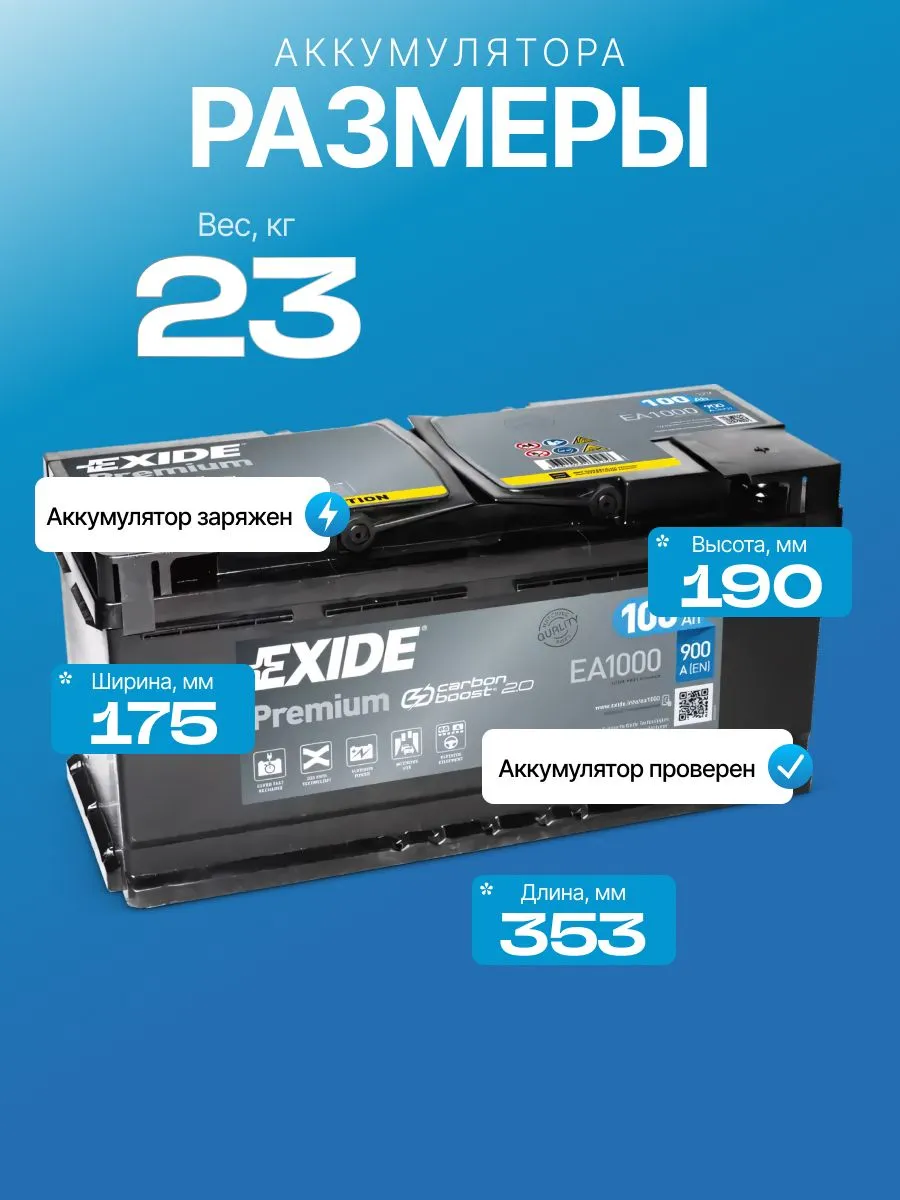 Выбирая аккумулятор EXIDE 12V 100 Ah, вы получаете долговечный и надежный источник питания для вашего автомобиля, стабильный пуск двигателя и уверенность в каждой поездке.
