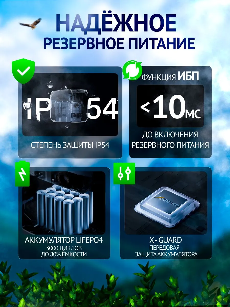 EcoFlow 600 Вт / 1200 В·А сочетает передовые технологии аккумуляторов и высокий уровень защиты оборудования, гарантируя бесперебойное питание даже при нестабильной электросети.